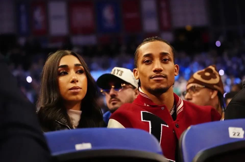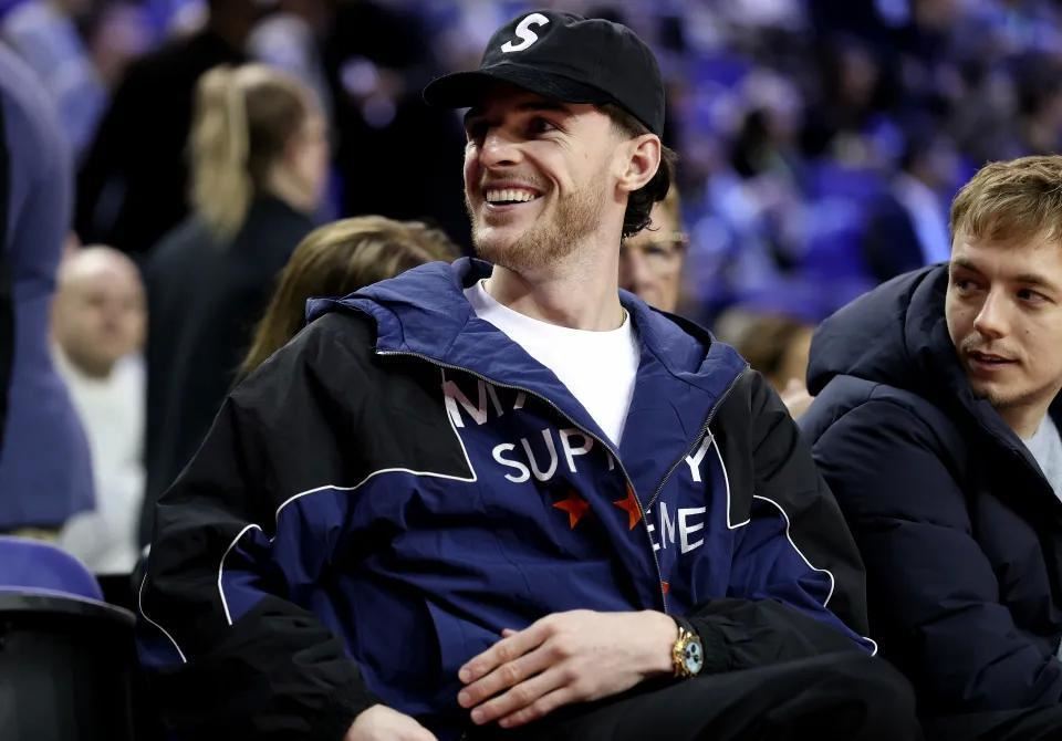 NBA伦敦赛当日下午在伦敦O2体育馆举行,奥兰多魔术对阵孟菲斯灰熊。刚在周六代表阿森纳出战的德克兰-赖斯来到现场观赛,坐在场边贵宾席,视角极佳。