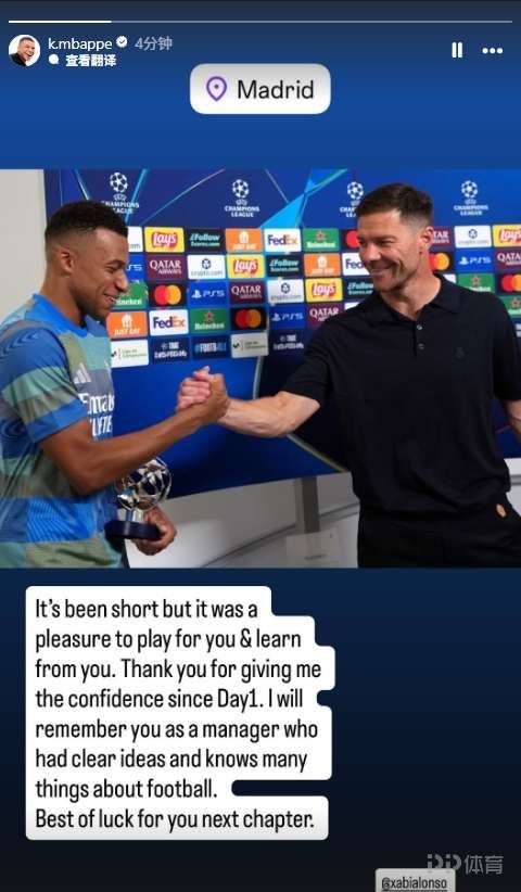姆巴佩社媒告别阿隆索:为您效力很荣幸 祝未来一切顺利 皇马官宣阿隆索下课,姆巴佩在社媒发表动态与阿隆索告别。 2026-01-17