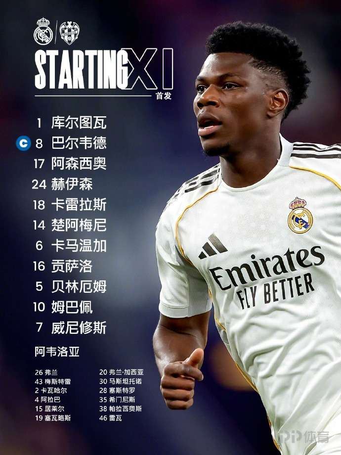 皇马vs莱万特首发:姆巴佩、维尼修斯、贝林厄姆出战 今晚21点,西甲第20轮,皇马主场迎战莱万特,赛前首发出炉。 2026-01-18