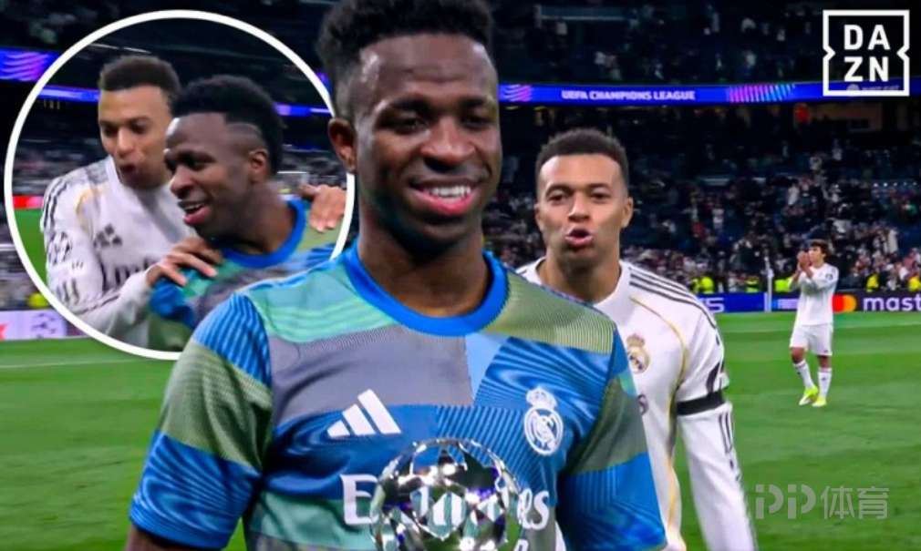 比赛结束后,在维尼修斯凭借惊艳表现荣膺欧冠单场MVP后,姆巴佩是第一批上前祝贺他的球员之一。而在比赛开始前,伯纳乌球场还因球队近期在西甲和国王杯的表现,向几名皇马球员发出了零星嘘声,维尼修斯曾是被嘘得最严重的球员之一。